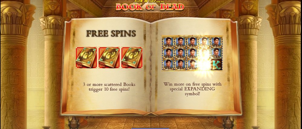 Wenn Sie es schaffen, drei oder mehr Book of Deads zu erhalten, wird der Freispielbonus aktiviert. In diesem Feature wird eines der Symbole zufällig ausgewählt, um sich auf den Walzen zu erweitern. Dadurch erhöht sich Ihre Gewinnchance während dieser Drehs massiv. Sie können auch weitere Freispiele gewinnen, wenn Sie mehr “Book of Deads” auf Ihren Walzen erhalten.